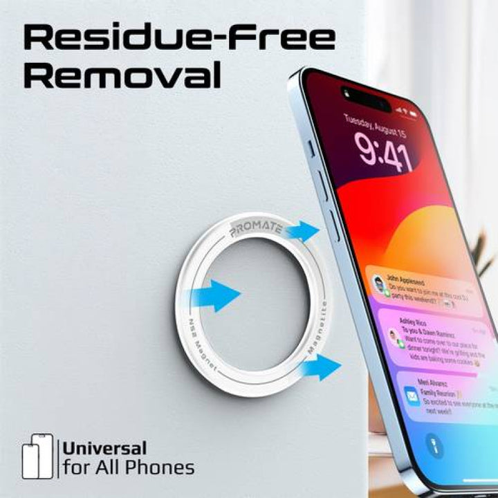 حامل هاتف متوافق مع ماج سيف MagSafe حلقة مغناطيسية بزاوية 360 درجة مغناطيسات قوية من المعادن النادرة N52 مادة لاصقة مرنة متوافقة مع المناطق ذات البيئات الحارة إزالة فعالة لبقايا Magnetite، للحفاظ على جهازك نظيف وخالي من العيوبمصنوعة من مواد متينة (مغناطيس N52، سيليكون، مادة ABS مقاومة للحريق، لاصق)