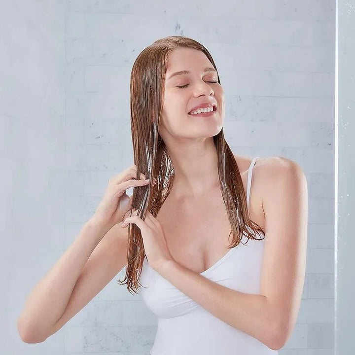 بعــد غســل الشــعر بالشــامبو، يوضــع الماســك عــلى طــول الشـعر والأطـراف. يـترك على الشـعر لمدة ٥ دقائق. يشـطف جيـدا.
