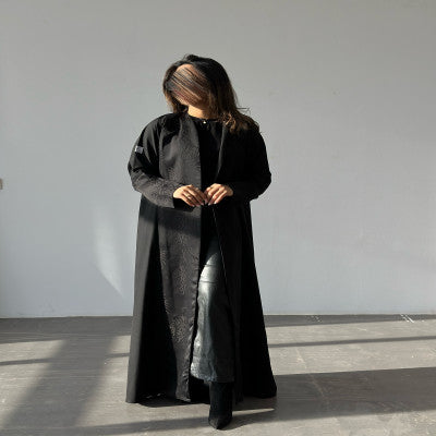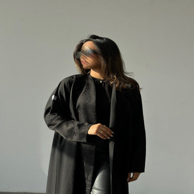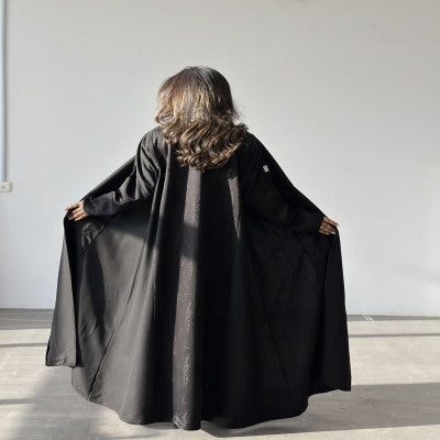 عبايه لنن هندي بتصميم نص كلوش مع تفاصيل مشجره لامعه, يوميه عمليه وللمناسبات