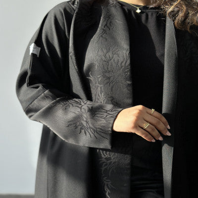 عبايه صيفيه  انيقه بتفاصيل مشجره من الامام والخلف والاكمام