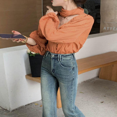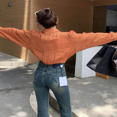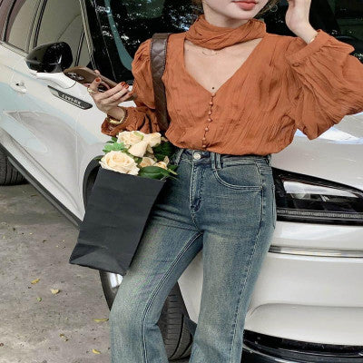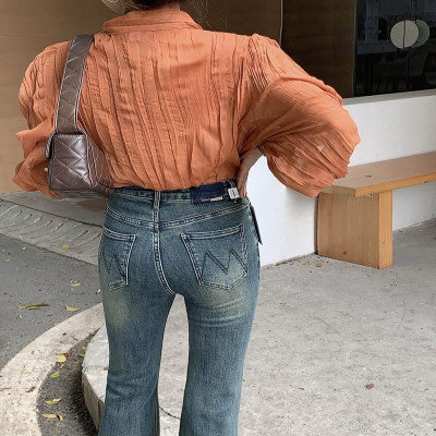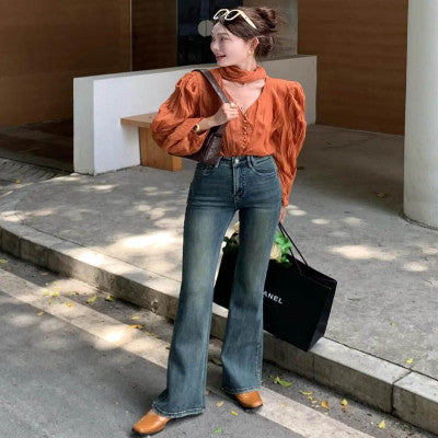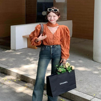 - نوع القطعة : بنطلون جينز نسائي بخصر مرتفع و أرجل واسعة