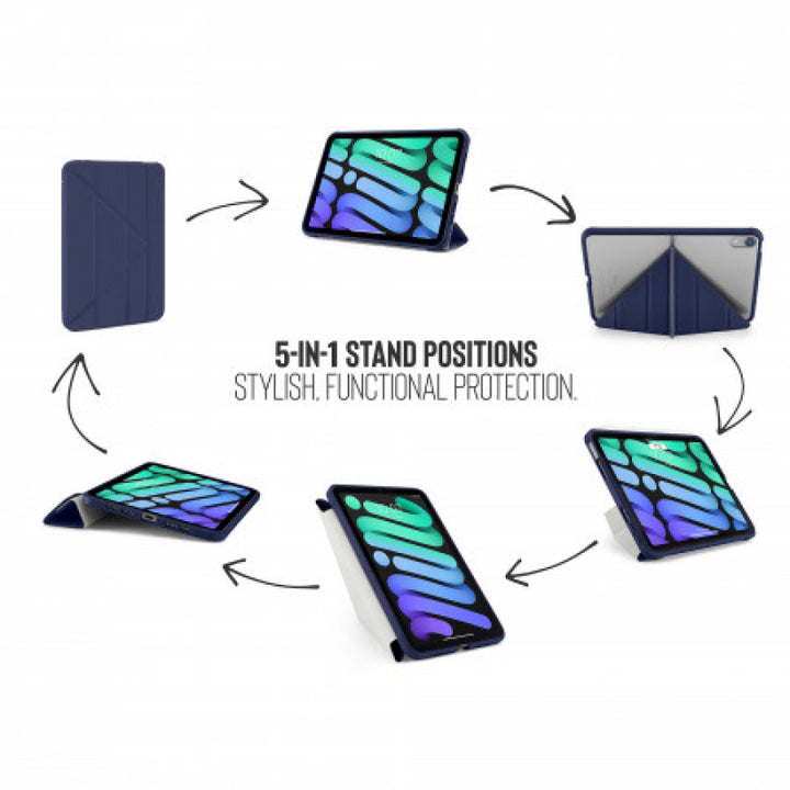 أوضاع وقوف 5 في 1 - توفر حافظة أوريغامي لجهاز ايباد ميني مقاس 6 انش 5 خيارات للوقوف لضمان أقصى قدر من الاستخدام على مجموعة متنوعة من الأسطح. توفر ما يلي: وضعان للكتابة والمشاهدة (تمامًا كالحافظة الذكية من ابل)؛ ووضعان إضافيان بقاعدة عريضة (مثالي للأسطح الناعمة أو الطاولات ذات الصينية)؛ ووضع بورتريه إضافي (مثالي لفيس تايم ومكالمات الفيديو).