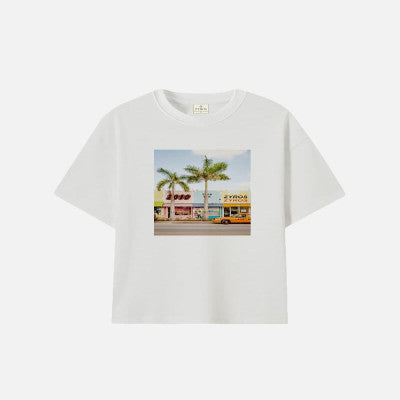 تي شيرت نسائي بلون أبيض بتزين بطبعة