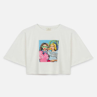 تي شيرت نسائي بلون أبيض بطبعة ملفتة