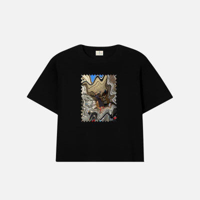 القطعة: تي شيرت, لــون القطعة: أسود , نوع القطعة : تي شيرت نسائي , الخامة: صناعة تركية - قطن 100% , نسق التي شيرت مع اطلالتك اليومية والكاجوال في كل الأوقات