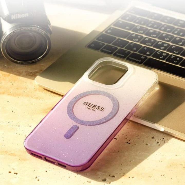 غطاء حماية Guess لجهاز iPhone 16 Pro Max يتميز بتصميمه الأنيق بلون أرجواني لامع مع شعار Guess محفور بشكل بارز، مما يضفي لمسة من الفخامة والعصرية. هذا الغطاء لا يضيف أي حجم إضافي للهاتف، حيث يأتي بتصميم نحيف وخفيف الوزن، مع دعم كامل لتقنية الشحن اللاسلكي MagSafe، مما يجعله مثاليًا للاستخدام اليومي مع سهولة في التركيب والإزالة. بالإضافة إلى ذلك، يوفر الحماية المثلى ضد الصدمات والخدوش، ما يحافظ على سلامة جهازك بشكل فعال.
