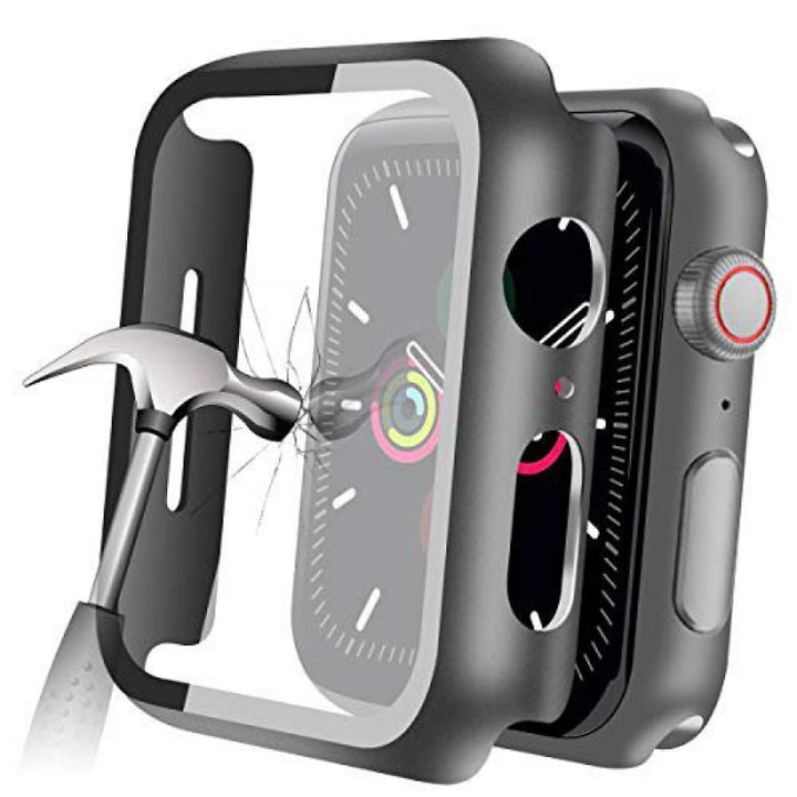 جراب واقٍ مع واقي شاشة من الزجاج المقوى لساعة أبل 44 ملم أسود