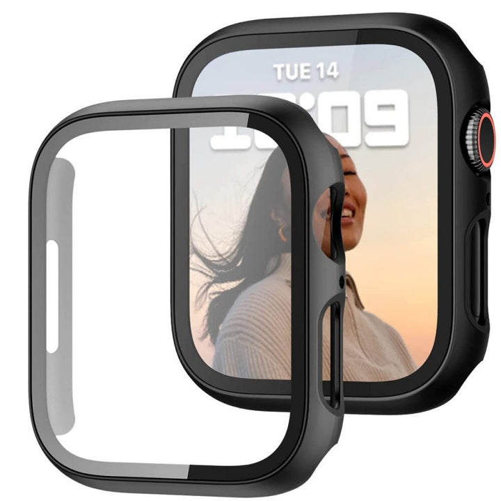 جراب واقٍ مع واقي شاشة من الزجاج المقوى لساعة أبل 45 ملم أسود