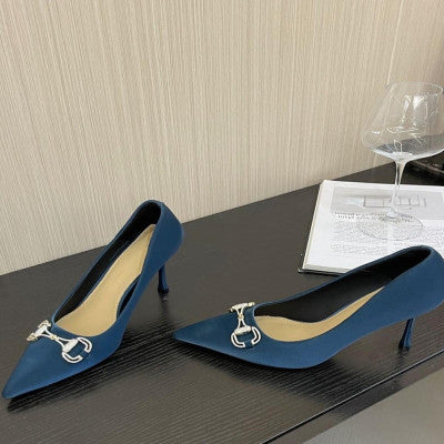 حذاء نسائي بكعب أنيق بلون أزرق