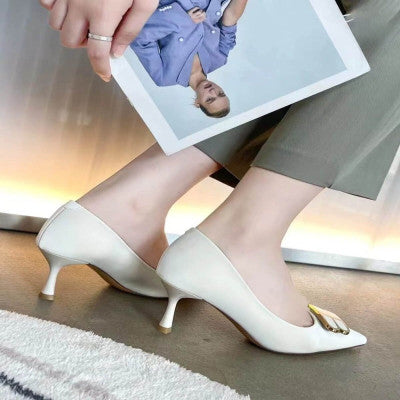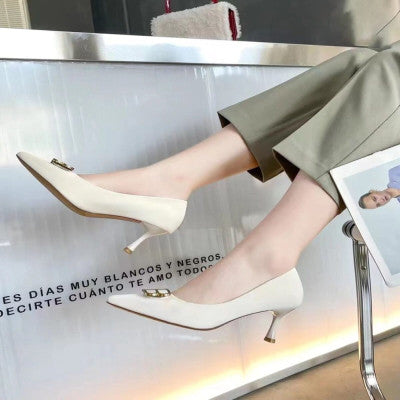 ‎ حذاء نسائي بكعب باللون الأبيض
