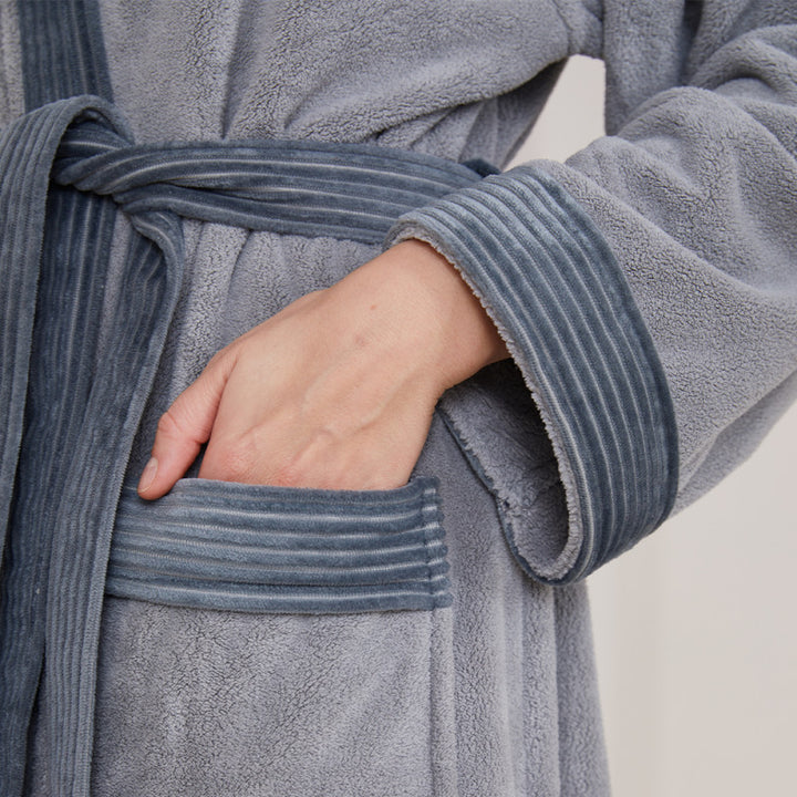 يأتي الروب بحزام أنيق من المنتصف، وجيوب أمامية لتدفئة يديك في فصل الشتاء،