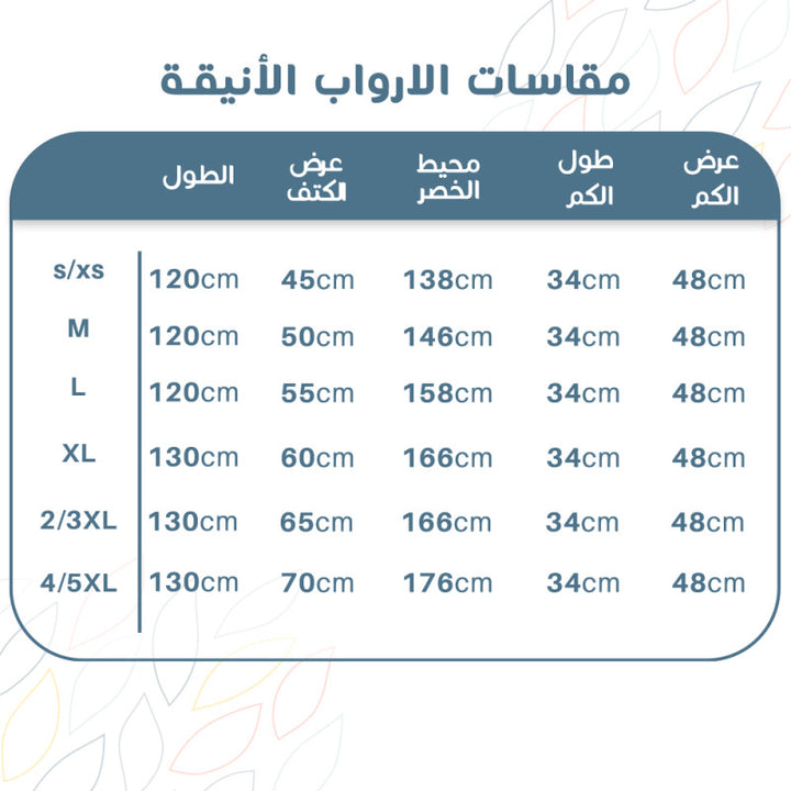 تتميز بتصميمها الأنثوي الفريد، مع أكمام واسعة تغطي ثلثين الذراع فقط،