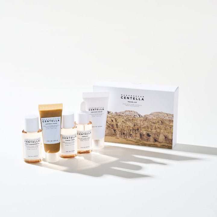 مجموعة روتينية كاملة للعناية بالبشرة من السينتيللا تحتوي على 5 منتجات صغيرة الحجم مناسبه للسفر أو تجربة خط منتجات السينتيللا.