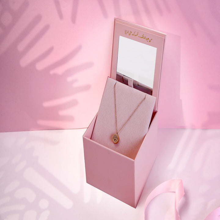 عقد جميل املئها برائحتك المفضلة والفخمة مصمم ليكون ذكرى لا تُنسى عند ارتدائه ، يصل في علبة مرآة تعكس جمالك بجملة من هيبة تحسدك حتى المرايا