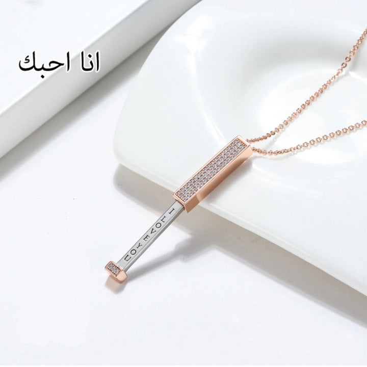 سلسال مرصع فصوص الزريكون مطلي ذهب بكلمة I LOVE YOU
