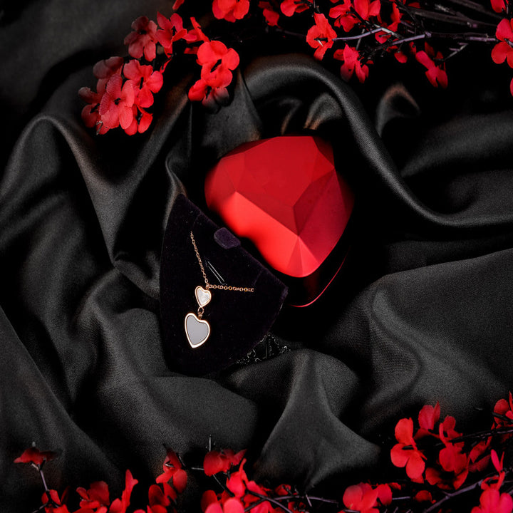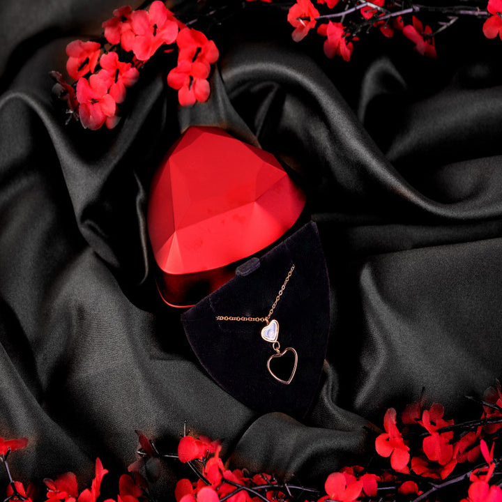 سلسال مطلي بالذهب مرصع بالرخام الأسود يتميز بصندوق بألوان مختلفة يضيء تلقائيًا بضوء ناعم عند فتحه. فاخرة ورومانسية وأنيقة