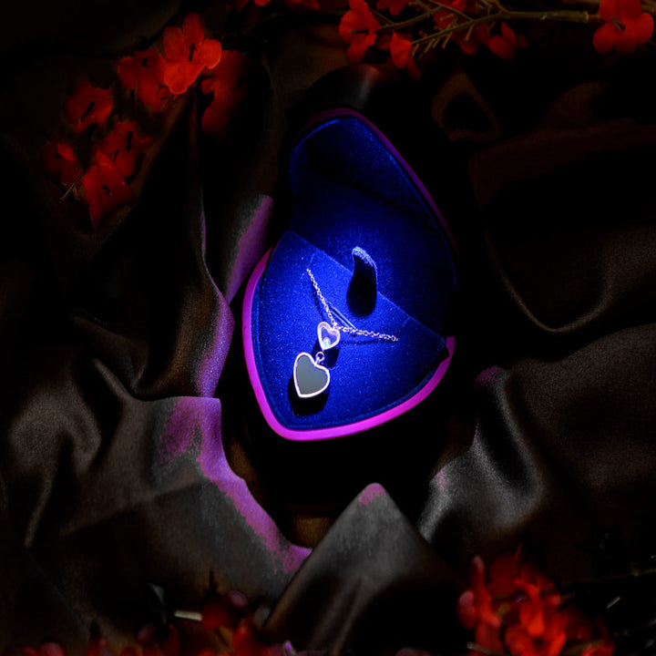 هل سبق لك أن كنت في موقف تريد فيه إثارة إعجاب شخص ما أو إظهار مدى اهتمامك؟ حسنًا ، الآن هناك طريقة سهلة للقيام بذلك! نقدم أفخم صندوق رومانسي في العالم بتقنية إضاءة LED. قلب الصندوق عبارة عن سلسلة مبهرة مصنوعة من المعدن المطلي بالذهب مع طبقة من الرخام الأسود. عند فتح الصندوق ، تضيء بمصابيح LED وتعرض فخامة المجوهرات ومطليات الذهب.