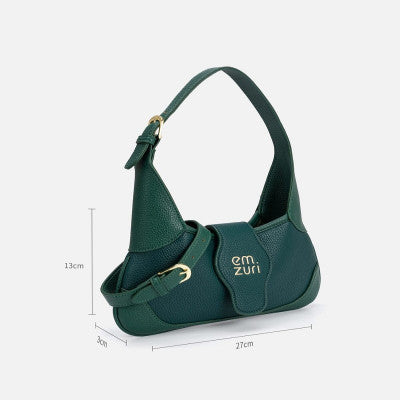 شنطة نسائيه بتصميم عصري من ماركة ايمزوري ، شنطة من الجلد الناعم باللون الأخضر، صممت الشنطة بيد مقوسه لسهولة حملها ولتعزيز الطابع الكلاسيك فيها ، مرفق مع الشنطة حزام قابل للازاله لتتحكمي بطريقة ارتداء الشنطة بما يناسب اطلالتك ، شنطة أنيقة تناسب كل الأوقات بمقاس الطول= 27 سم - العرض= 3 سم - الارتفاع= 13 سم .