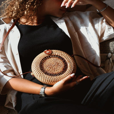 - التفاصيل: شنطة من القماش المحبوك تناسب اطلالتك ف البحر