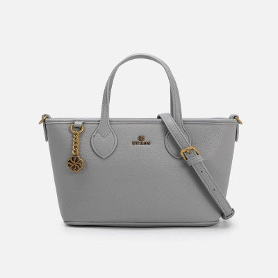 • شنطة من الجلد الفاخر باللون الرمادي