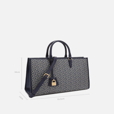 بتصميم عملي متفرد ، شنطة عمليه لكل يوم من الجلد المنقوش بأسم الماركه باللون الأزرق ، تتميز الشنطه بحجمها الذي يناسب كل الأوقات او بالأخص اوقات العمل وأوقاتك الدراسيه لان حجمها يناسب جدا اطلالتك العمليه ، شنطه عمليه تناسب إطلالتك اليوميه بمقاس الطول= 33 سم - العرض= 13سم - الارتفاع= 34 سم ، تتميز الشنطه بيد مقوسه لحملها بكل سهوله و بحزام مرفق قابل للإزاله لإطلاله كاجول وأكثر جاذبيه .