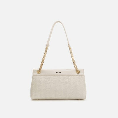 شنطه نسائيه من ماركة آن ، شنطة من الجلد المنقوش بشعار الماركه باللون الأبيض ، شنطة بتصميم عملي لإطلاله عمليه لكل يوم ، صممت الشنطه بحجم مناسب يكفي لكل إحتياجتك اليوميه بيد مقوسه علويه من المعدن بتصميم سلسال عريض ومن الجلد، تتميز الشنطة بسحاب اغلاق وبتقسيم داخلي لجزئين لترتيب اغراضك بطريقه مرتبه ولسهوله الوصول لها ، نسقي الشنطه مع اطلالتك اليوميه .