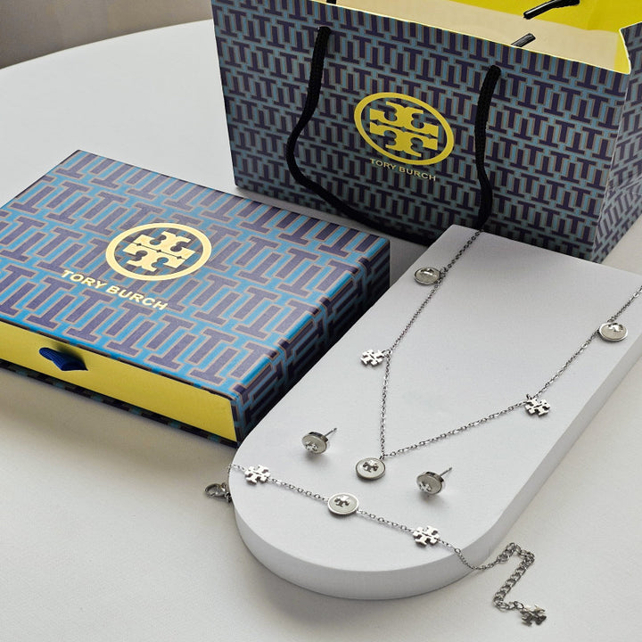 طقم نسائي أنيق من ماركة توري بورش - فضي