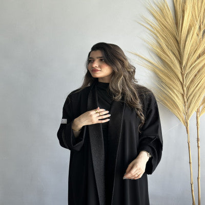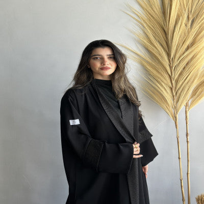 عباية ارينا بلون اسود ملكي مع تفاصيل  مشجره على الياقة والاكمام