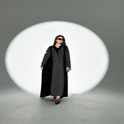 عبايه بليزر مخمل مع تدخيلات انيقه من الجوخ متعددة الالوان راقيه ومثاليه لطله شتويه مُلفته