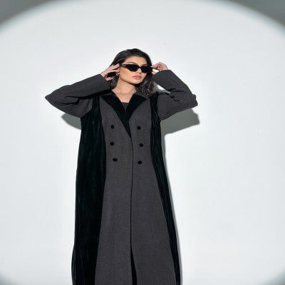 عبايه بليزر مخمل مع تدخيلات انيقه من الجوخ متعددة الالوان راقيه ومثاليه لطله شتويه مُلفته