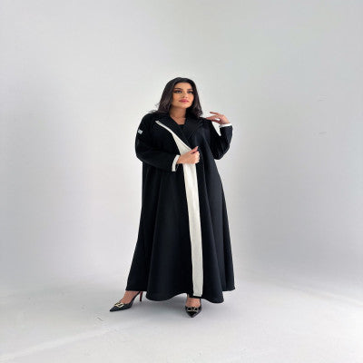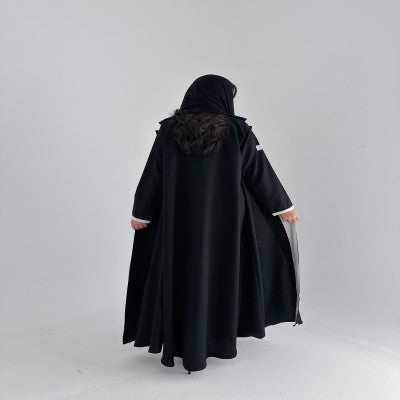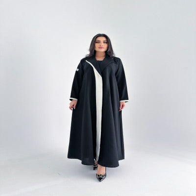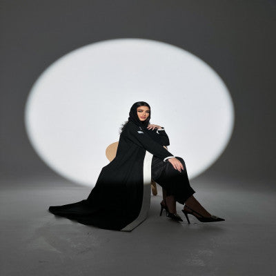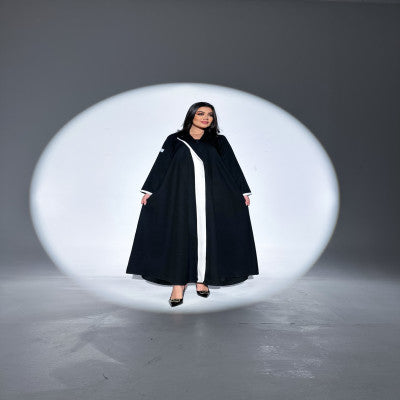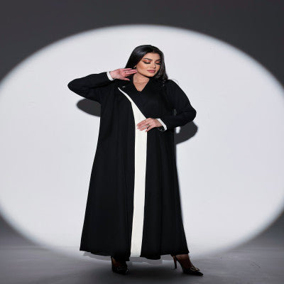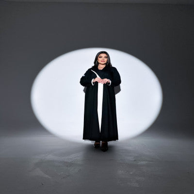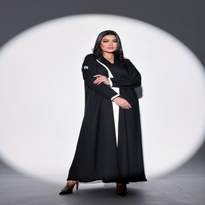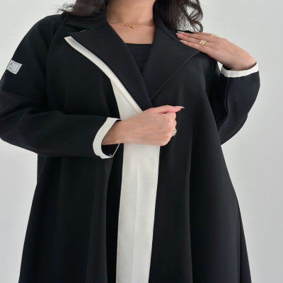عبايه بليزر كتان اصلي مع قصه اماميه بالابيض  تعتمدها المرأه الانيقه والعمليه