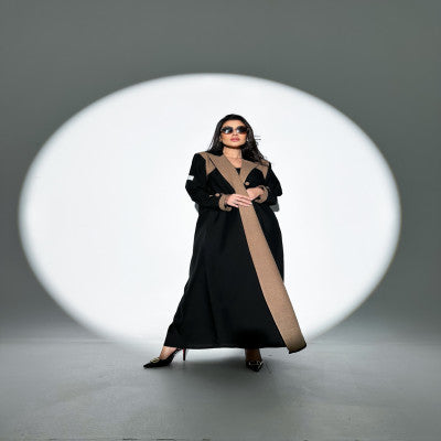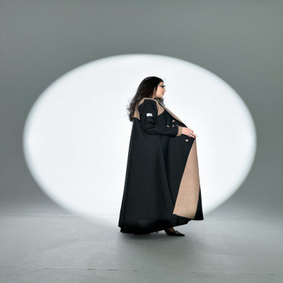 عبايه بليزر كتان مع تدخيلات انيقه من الجوخ على الاطراف تعتمدها المرأه الانيقه والعمليه