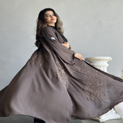 عيشي لحظات الترف مع عباية ترف بقصة كلوش وبتطريز موزع بإتقان