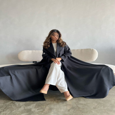 عباية جانيت كلوش و بلون اسود ملكي وبقصة بليزر الانيقه