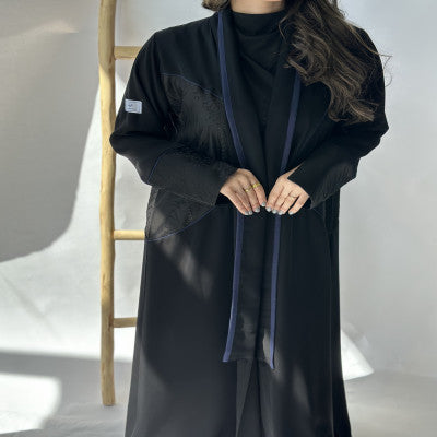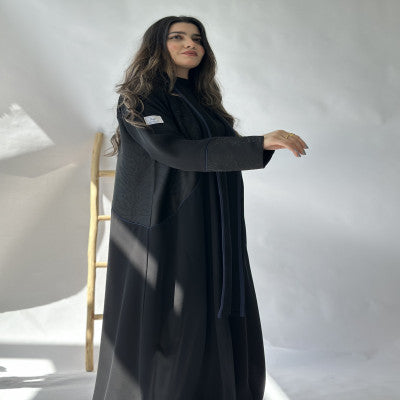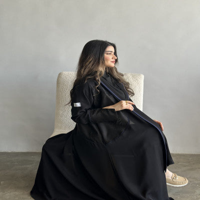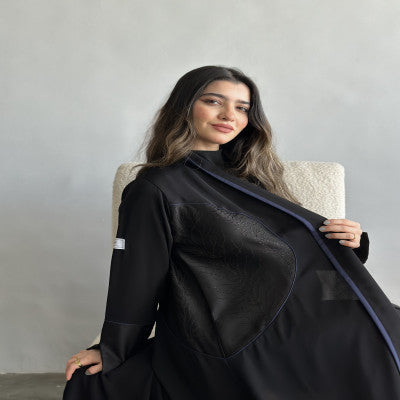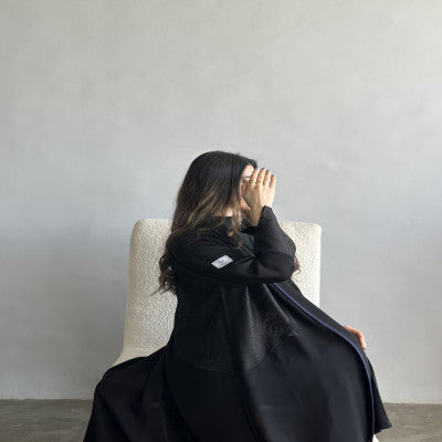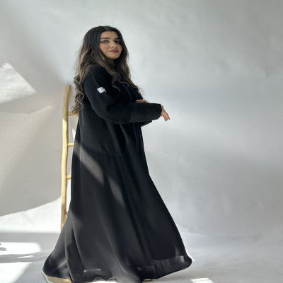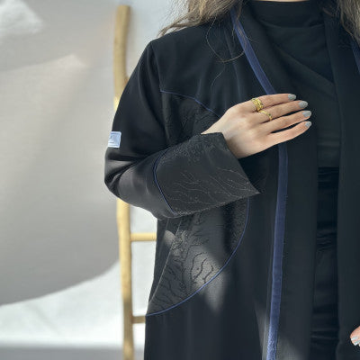 عيشي يومك مع عبايه ديلي ، عبايه سودا مع تفاصيل انيقه ومشجرة على اطراف واكمام العبايه .الخامه: