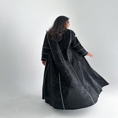 عبايه بليزر بخامة كتان مشجر مطعمه بالقيطان تعتمدها المرأه الانيقه والعمليه في يومها ومناسباتها