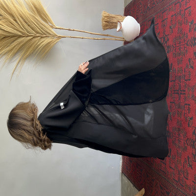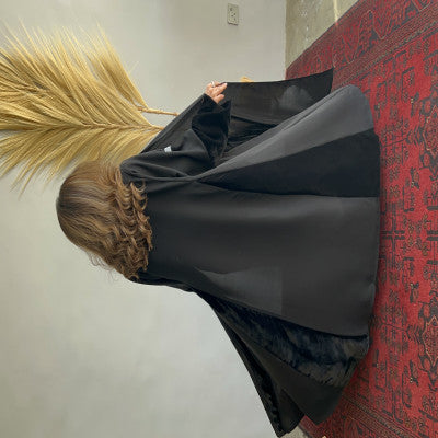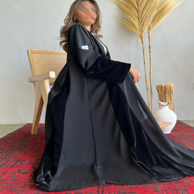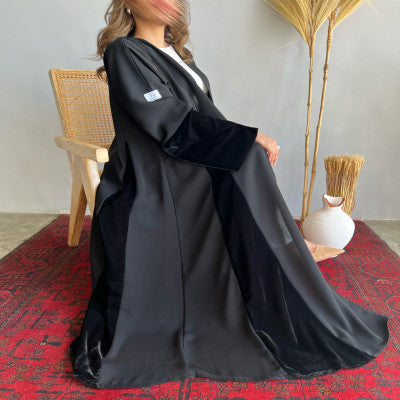 عبايه كلوش مع تدخيلات من المخمل بشكل انيق , تعطي طله راقيه ومتجدده