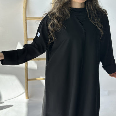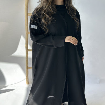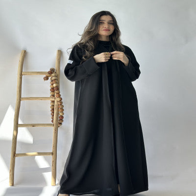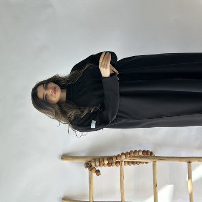 عباية ماريا بقماش انترنت المميز وبقيطان من الامام ، بلون اسود ملكي ، وبقصة نص كلوش