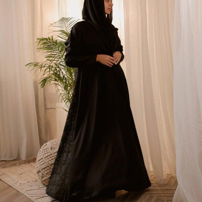 ‎ عباية نسائية بتصميم أنيق بلون أسود