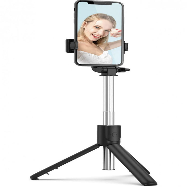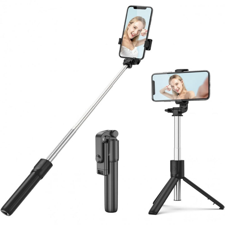 - عصا سيلفي R1 لاسلكية مع ذراع قابلة للتعديل وفلاش العصا مصنوعة من الألومنيوم مع قبضة مريحة تضمن الراحة أثناء الاستخدام. يمكن فتح المقبض إلى وضع الحامل الثلاثي الذي يعمل كحامل ثلاثي القوائم. يسمح لك الزناد الموجود على جهاز التحكم عن بعد بتنشيط الغالق عن بُعد في كاميرا النظام في الهاتف الذكي وفي التطبيقات المتوافقة. المنتج يناسب معظم الهواتف المحمولة المتوفرة في السوق - مسافة الذراع تصل إلى 85 مم. يحتوي على جهاز تحكم عن بعد قابل للإزالة، لذلك يمكنك التحكم فيه عن بعد المواصفات الطول الأقصى 67 سم