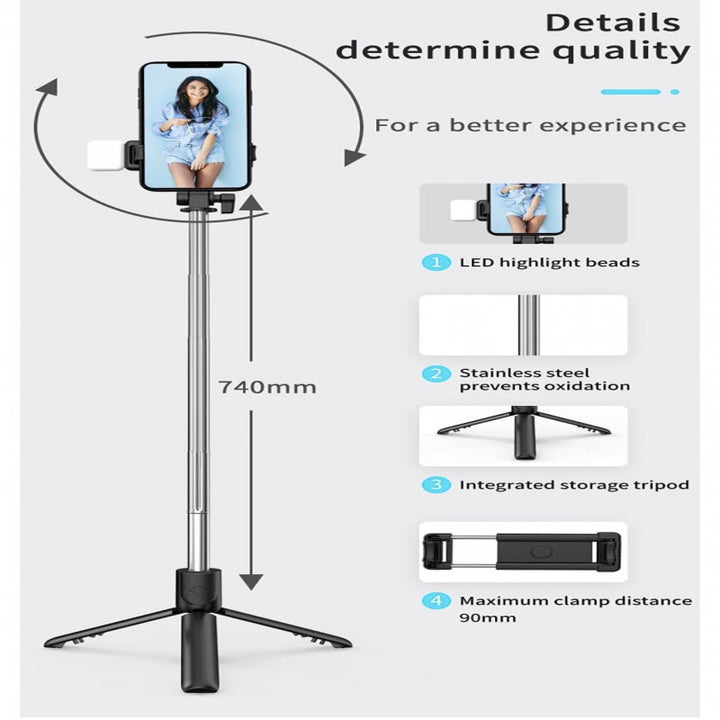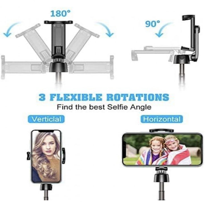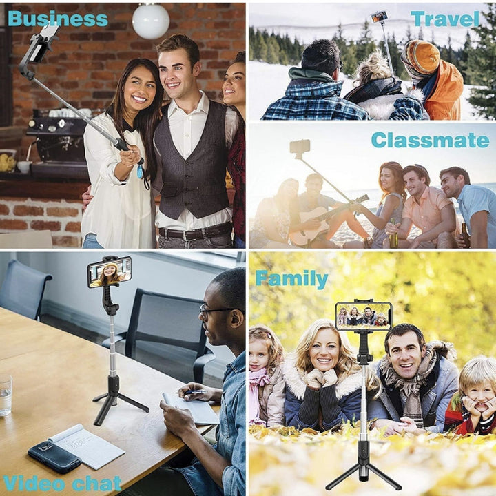 - عصا سيلفي ثلاثية القوائم مع جهاز تحكم عن بعد بلوتوث: عصا سيلفي 3 في 1 مع جهاز تحكم عن بعد لاسلكي مدمج حتى 40 مترًا / 130 قدمًا، مناسبة للحفلات والسفر والمشي لمسافات طويلة وما إلى ذلك. يمكن استخدامها أيضًا كحامل ثلاثي القوائم سريع وسهل.