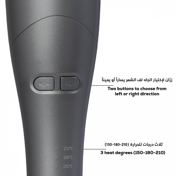- زرّان لإختيار اتجاه لف الشعر يساراً أو يميناً.