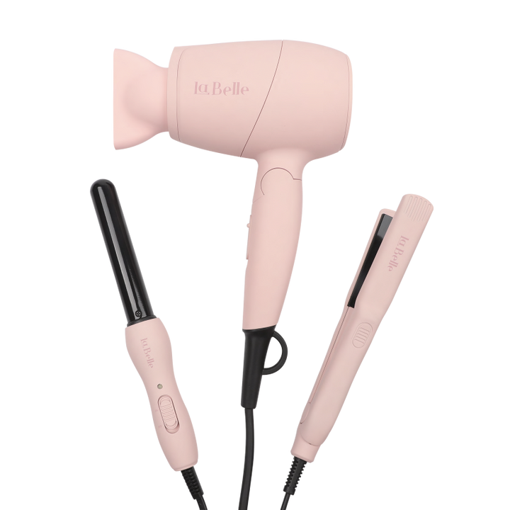 مجموعة العناية بالشعر من لابيل ميني مكونة من ثلاث قطع احترافية صغيرة الحجم مناسبة للسفر أو حملها إلى أي مكان سوف تذهب إليه، وكل قطعة منها لها استخدام خاص