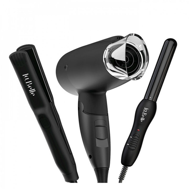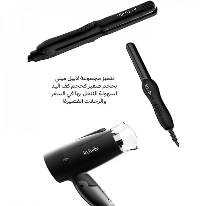- مجموعة العناية بالشعر من لابيل ميني مكونة من ثلاث قطع احترافية صغيرة الحجم مناسبة للسفر أو حملها إلى أي مكان سوف تذهب إليه.