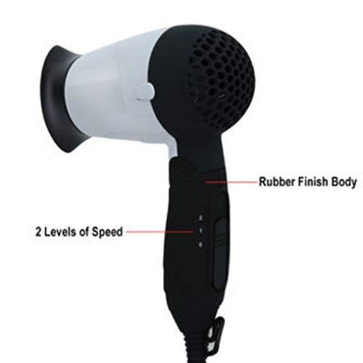 استشوار مجفف شعر كهربائي مناسب للسفر والاستخدام المنزلي والصالونات ابيض واسود
