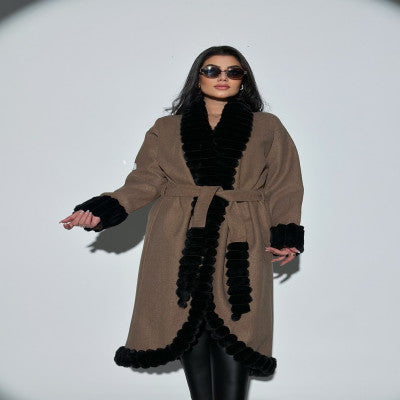 معطف بالطو شتوي مزين بالفرو لطلعاتك الشتويه اناقه ودفئ مثالي تستحقين اقتنائها
