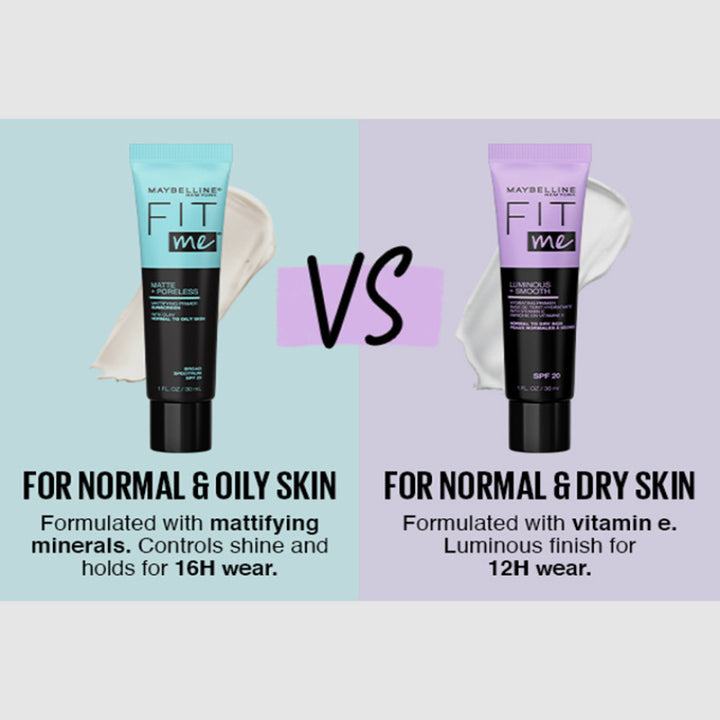 نقدم لكِ برايمر مايبيلين فيت مي لومينوس + سموث، سرّكِ للحصول على بشرة مشرقة وخالية من العيوب تدوم طوال اليوم.