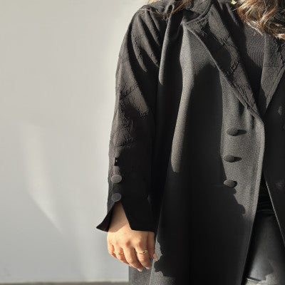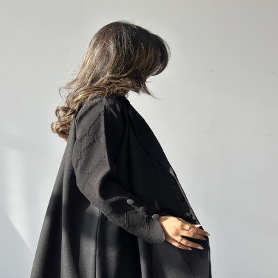 عباية بليزر بقصة كلوش و باكمام مشجره انيقه