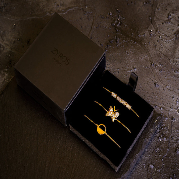 هدية اساور نسائية مرصعة بالزركون على شكل فراشة ودوائر. هدية جميلة وذات مغزى لمن تحب.