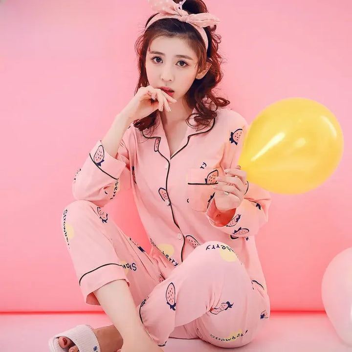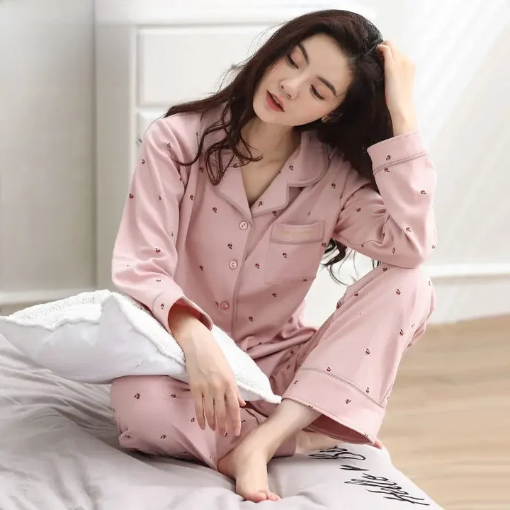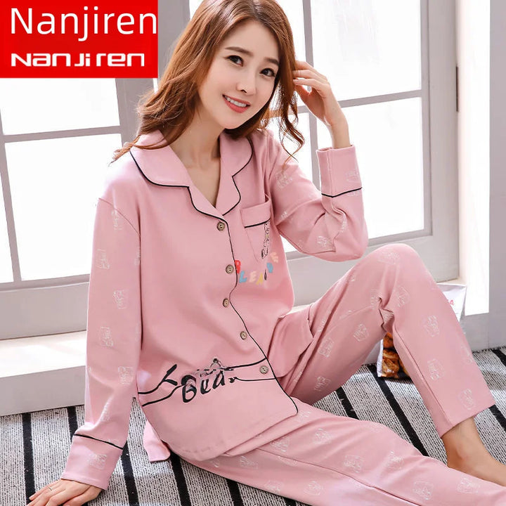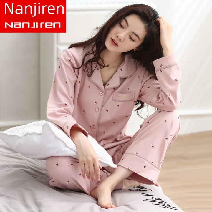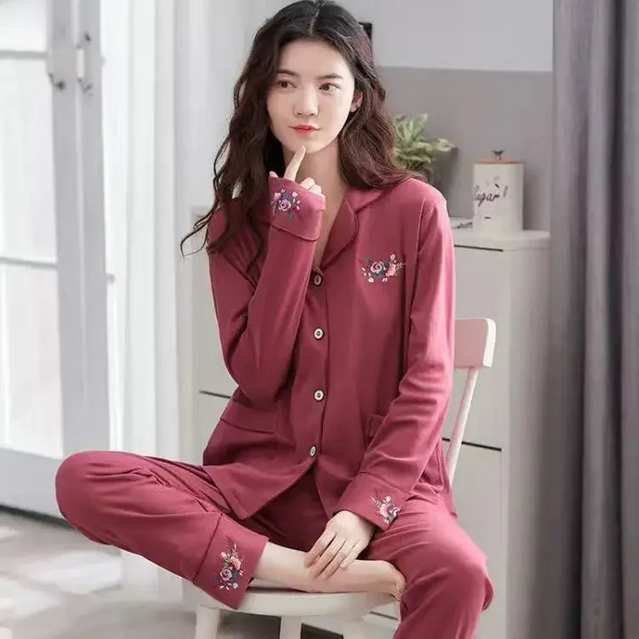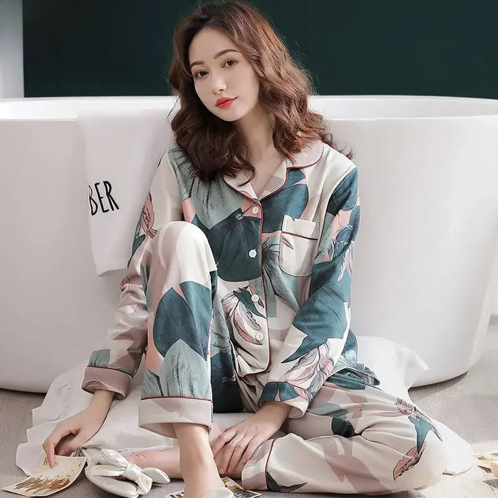 بجامة شتوي قطن100% بياقة مربعة انيقة منزلية